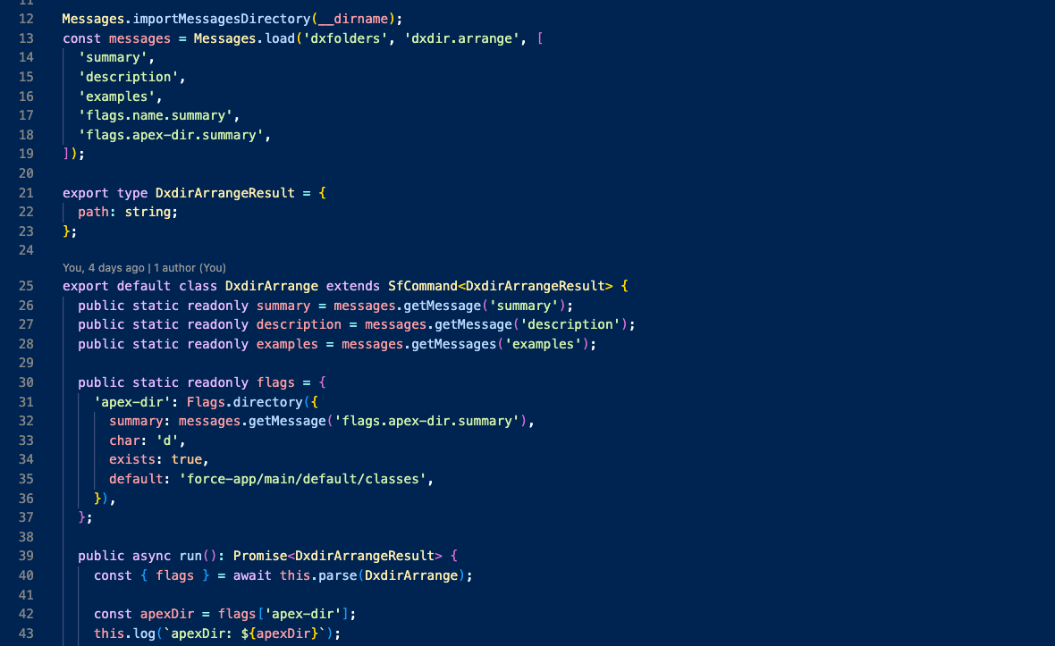 For this, I created a flag so that I could call the command like this sf dxdir:arrange --apex-dir [your path]