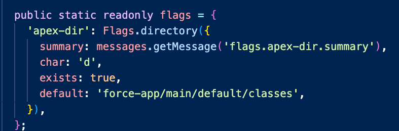 I created a flag called apex-dir, of type directory and configured it so that it automatically verifies if the directory actually exists or not (I didn't configure any of this manually; the CLI asked me these questions when I ran the generate flag command.