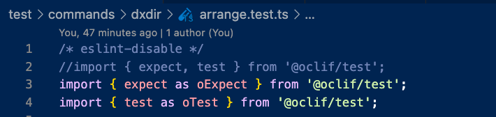What I did was give them an alias of oTest and oExpect. This way, I can use Jest's test and expect functions, and in the future, when I want to use the Oclif ones to verify the terminal output, I can use oTest instead